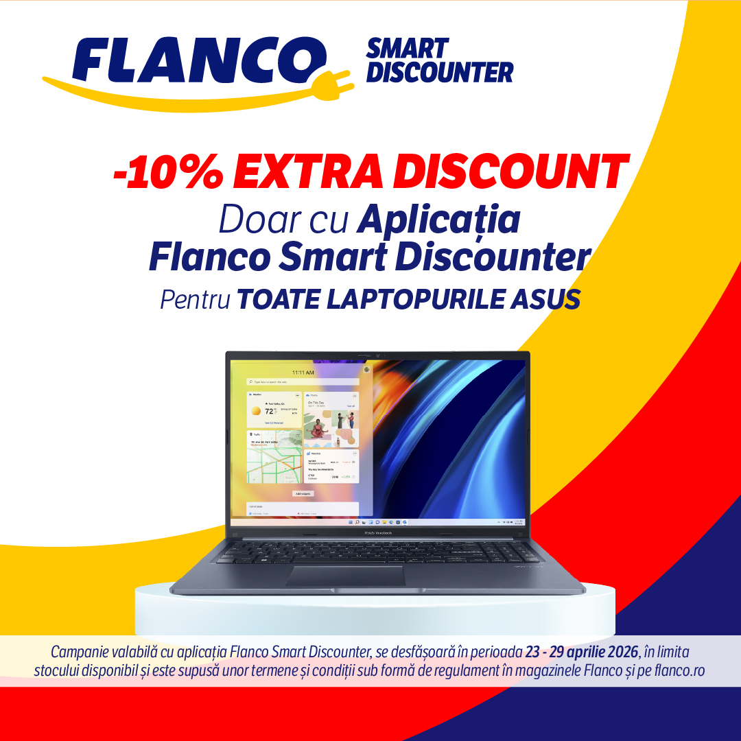 La Flanco te bucuri de EXTRA DISCOUNT, doar cu aplicația Flanco Smart Discounter, în perioada 23–29 aprilie 2026!